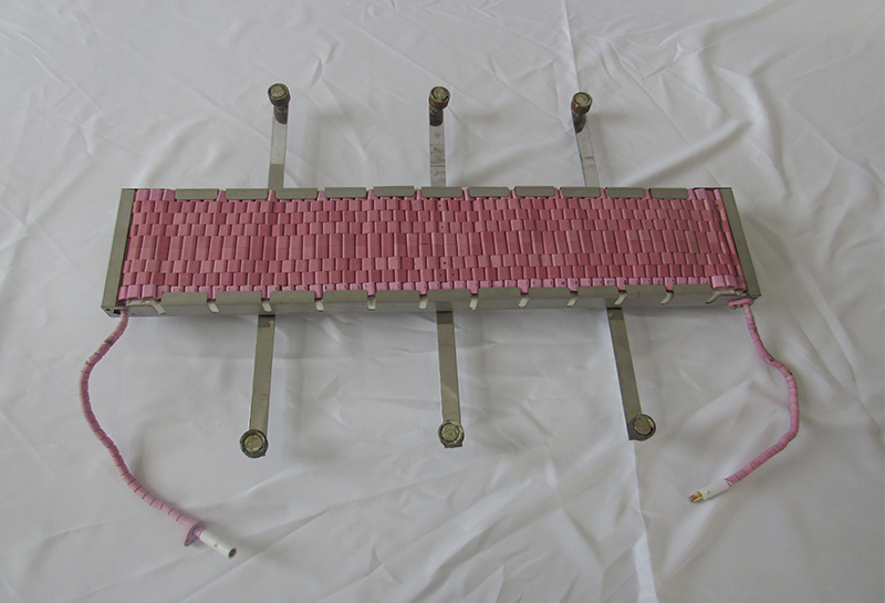 在帶工裝的履帶式陶瓷加熱器兩側安裝幾塊磁鋼,能吸附在工件上,適用于球罐、船體等金屬構件的焊前預熱,使用靈活。